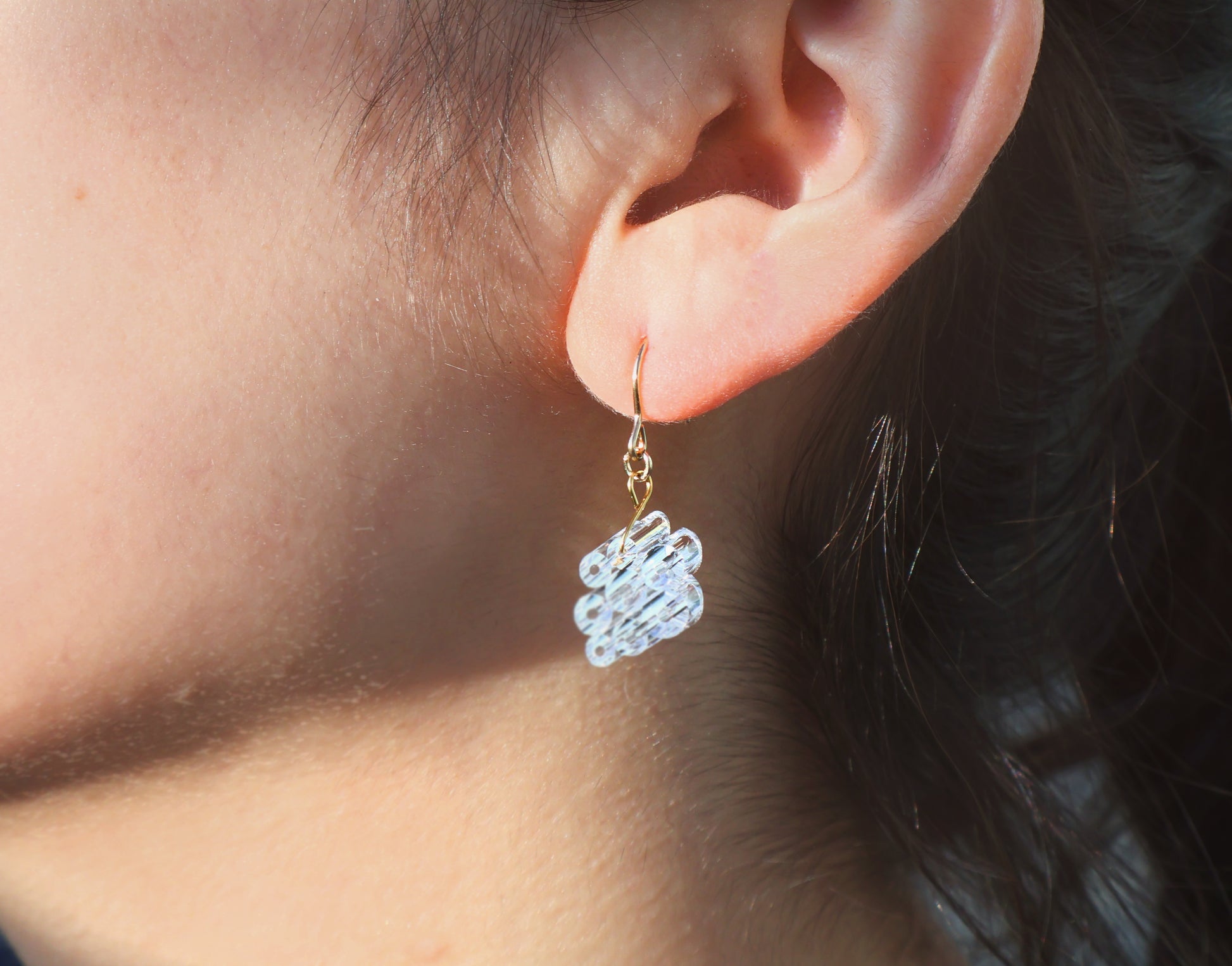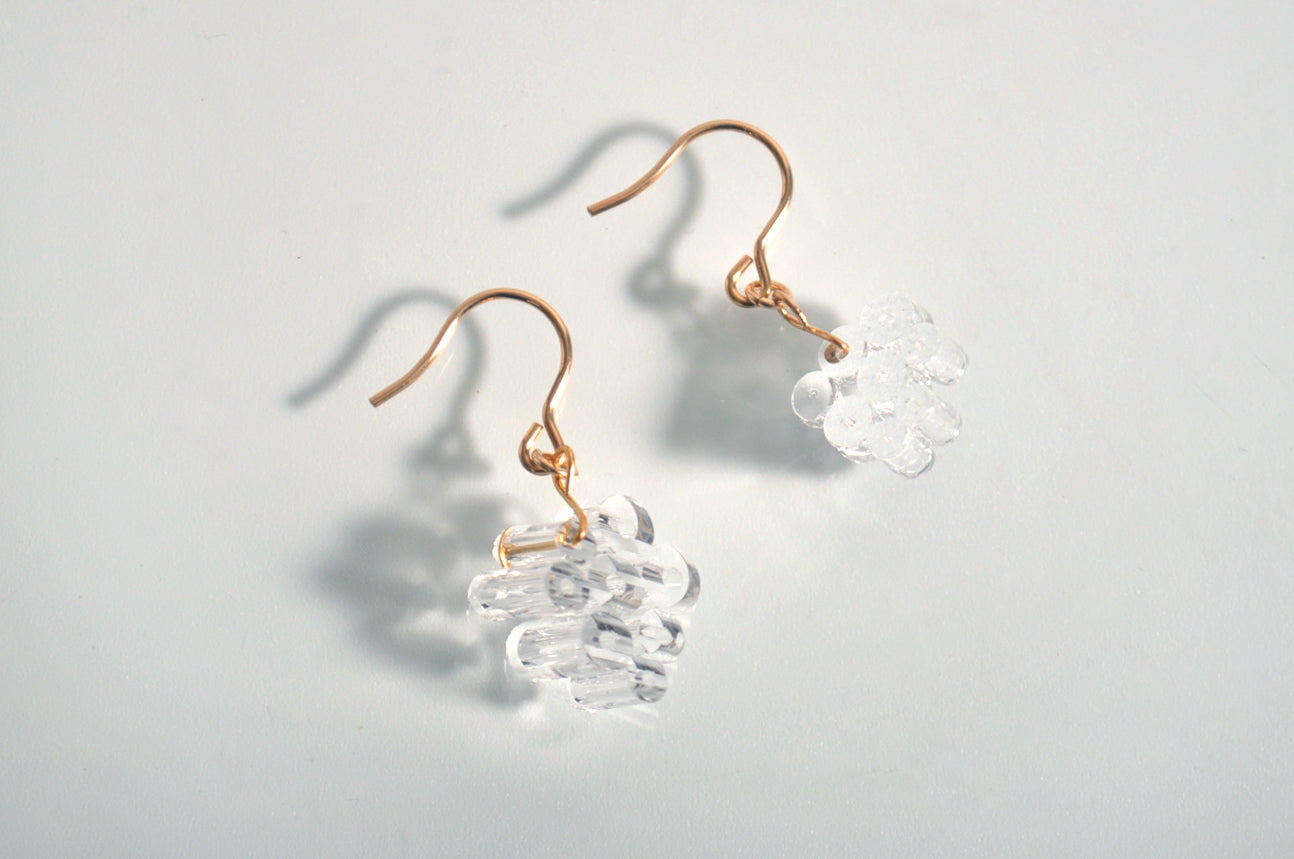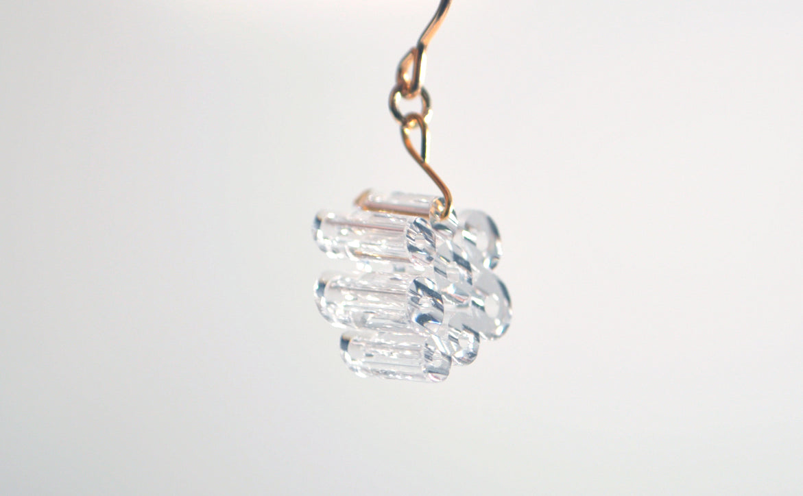 透明な管が集まったデザインで、揺れるたびにキラキラ輝きます